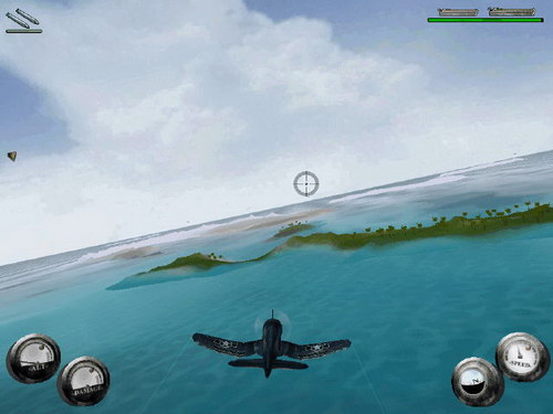 画 面:全3D的飞行射击游戏场面极其宏大,碧海蓝天的美丽超乎想象,高度精细的战舰和飞机将游戏的真实性提升到了新的高度,即时的仿真小屏幕捕捉战况更增加了空战的气氛。