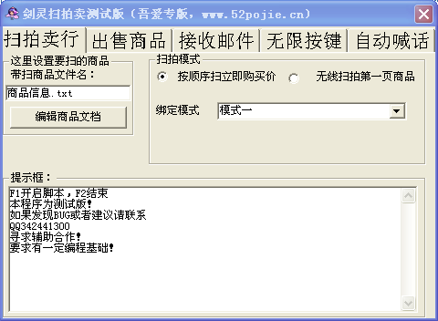 剑灵扫拍卖辅助是在剑灵游戏中赚大钱不可缺少的一款工具,可以利用辅助快速扫描拍卖行,抢购低价物品,然后高价卖出。另外剑灵扫拍卖辅助还可以接收邮件、自动喊话和无限按键等等功能。想成为剑灵游戏的土豪玩家,千万别错过哦。
