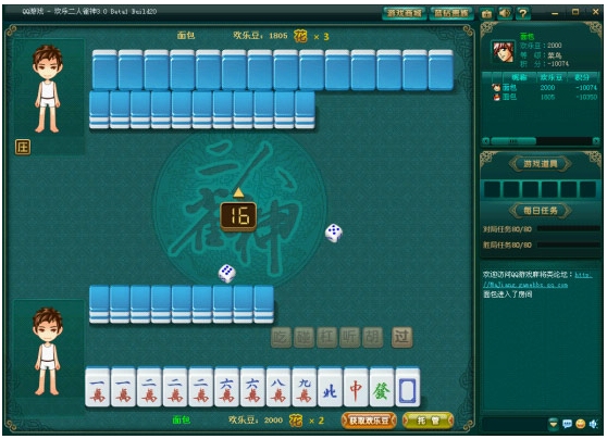 欢乐二人雀神是一款专为window8平台提供的以欢乐豆为积分体系的二人麻将游戏,欢乐二人雀神去掉筒和条子,提高竞技性和胡牌刺激性,减少对局时长;界面给用户耳目一新的感觉;添加任务系统,玩家在完成每日对局任务和胜局任务可获得丰厚的奖励。