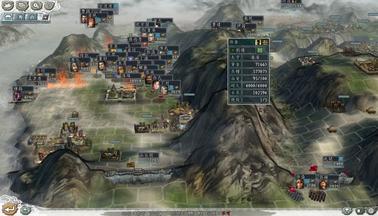 从曹操,刘备,孙坚到张角,吕布,孟获,全君主,全史实的武将都分散在全国各地。司马懿,毋丘检等不会在其他剧本登场的君主也割据一方。生卒年的设定在这里无效。打倒强敌,只有不断取胜才能得到天下。