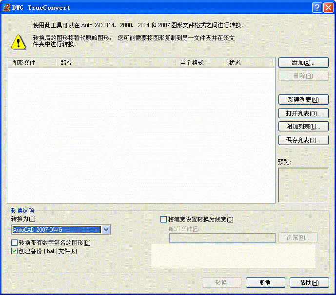支持 CAD R2-R2010 图形文件间的版本互转,转换版本后可去除教育版