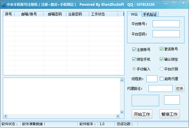 山猪小米账号注册器是一款可以对接uu云打码平台,注册账号、激活账号、绑定手机等等。