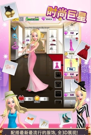 《时尚巨星》是一款模拟打扮类游戏,做为一名时尚巨星,你要时刻保持亮丽的外表。运用头发造型、化妆、名牌衣服、饰物和高跟鞋,突显你的明星风范。你可能是人气网球手、舞蹈家或者乐坛天后,也可以约会不同界别的男友!【游戏特色】