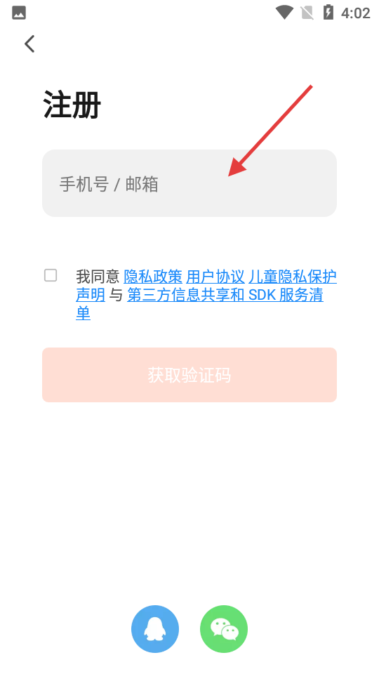 2. 输入手机号码或者邮箱,然后点击【获取验证码】按钮。