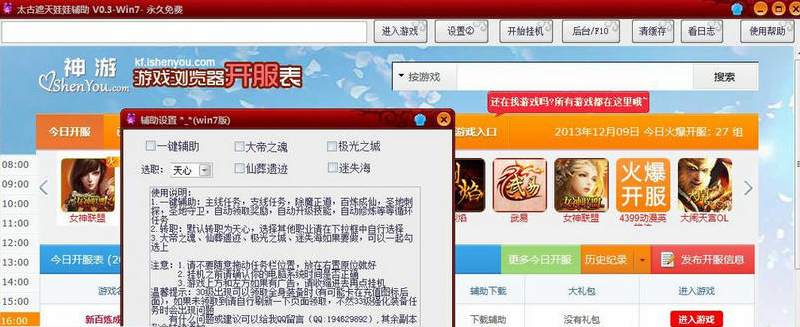 265G太古遮天辅助下载 v2.0 免费最新版 265G太古遮天辅助是一款为游戏《太古遮天》精心制作的修改器。太古遮天是最近一款非常火爆的仙侠页游,本款太古遮天修改器可以帮您自动挂机、领取奖励、智能副本等等,让您体验不一样的热血澎湃,叙写神一样的太古史诗。