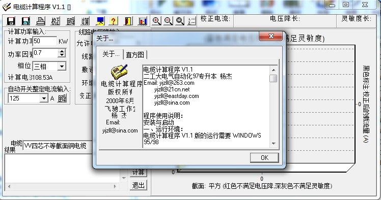可以按自动开关整定电流计算及灵敏度计算、按线路压降计算。内附电缆数据库管理工具,可以输入新电缆数据库名称。