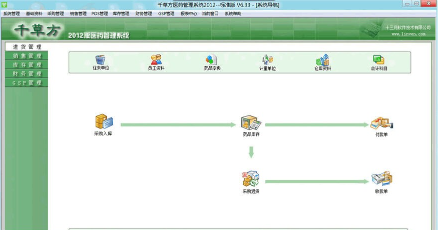 千草方医药管理系统是一套针对医药企业、药店经营管理而开发的专业医药软件,集进销存、财务、GSP及经营分析于一体,充分满足医药经营企业的各种需求。