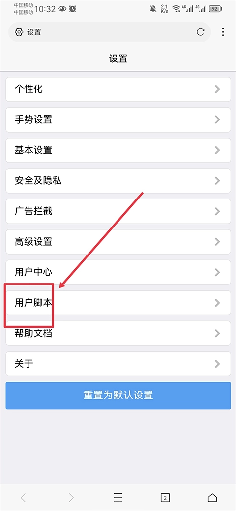 4、当脚本安装成功后,在用户脚本的管理界面(浏览器设置》用户脚本),我们就能看到刚刚安装好的脚本。