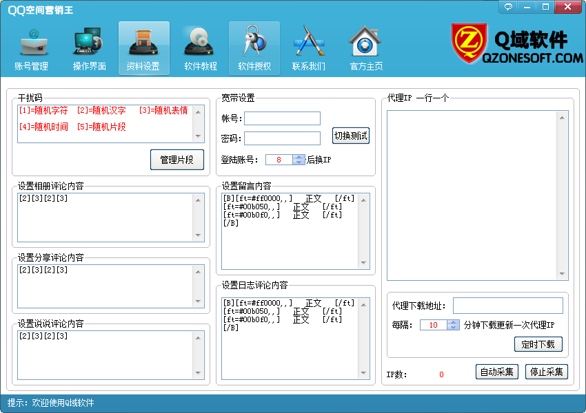 Q域QQ空间营销王支持结合多款QQ空间营销软件的功能,一步到位,一条龙服务,访客留痕,日志留痕,相册留痕,日志评论,相册评论,说说评论,留言。