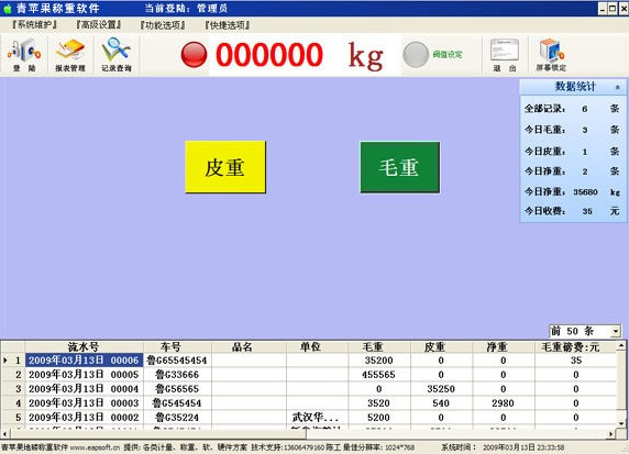 4:用【管理员】设置,用【计量员】过磅;默认密码:123