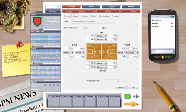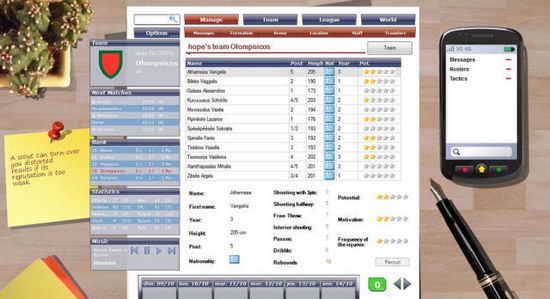 职业篮球经理2012游戏使用很简单的界面勾画出了篮球经理的工作,从场地规划到球队管理都一应俱全,玩家只需要坐在电脑前面排兵布阵便可进行游戏,相对于NBA系列,这款游戏几乎没有什么操作性可言,但是对战术思想的要求较高,适合喜欢模拟经营型游戏的玩家。游戏的风格很简单,少量的文字,少量的贴图,以及很有特色的战术板功能,这些都能更好的让玩家适应这款游戏。