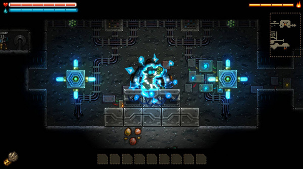 《蒸汽世界》在3DS的ESHOP上已经提前提出过,移植到PC平台上除了画面有明显差异外,掌机的双屏游戏方式在PC平台上得以完美的展现,其实至今觉得真正满足双屏的游戏并不多,相比3DS平台,本作最大的优势就是分辨率的大幅提升,视野显得更加清晰。游戏在起初之时候,画面给的人感觉,非常简单爽朗,随着游戏的进行,我们会完全对这个看似就是挖挖挖的独立游戏刮目相看,地图上几乎涉及了,众多2D卷轴大作所具有的诸多内容。 本作的剧情非常简单,我们的目的仅仅是不断的下到更深的地方,挖矿回到地上换钱解锁更多要素,在黑暗的地下,微微的烛光足够照亮自己所在的区域,黑与红的营造的气氛着实不错,随着挖到更深的地方,我发现原来我们能做的不单单是挖坑到天亮。