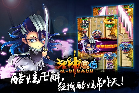死神Q传是一款以人们动漫死神为题材的策略类手游,拥有创新进阶、卍解,火爆战蓝染,斗拜勒岗,决友哈巴赫等等创新玩法,在这精致的游戏画面和丰富的游戏内容中和一护一起战斗吧。