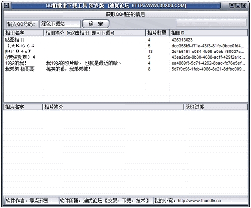 软件应用很简单,输入QQ号码,然后确定 在要下载的相册上双击即可!