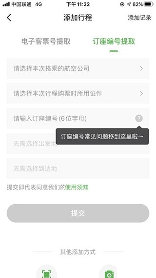 3、添加方式有两种,具体可参照图2和图3,既能够通过票号添加,也可以使用订票6位码进行添加。