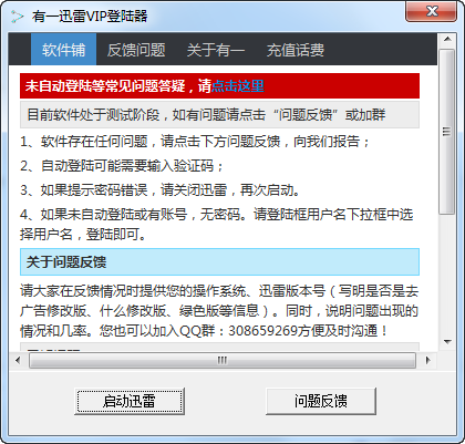 1、个别情况下软件不能正常启动迅雷,需要二次启动(下版中修正);