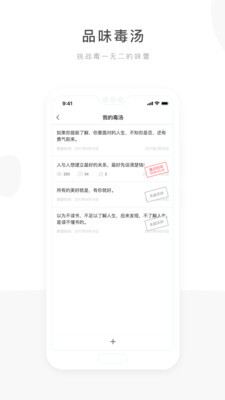 毒汤日历挺有意思的,里面有不少毒鸡汤。大家都知道鸡汤有其作用,而毒鸡汤有时候也能起到以毒攻毒的效果。而且,它还有个让用户提交毒鸡汤的功能呢。