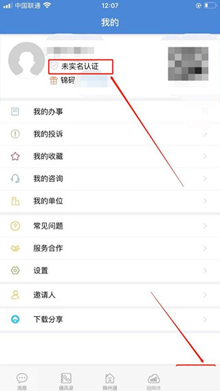 2、点击APP底部导航栏“我的”,在头像右侧,点击“未实名认证”,进入实名认证环节。