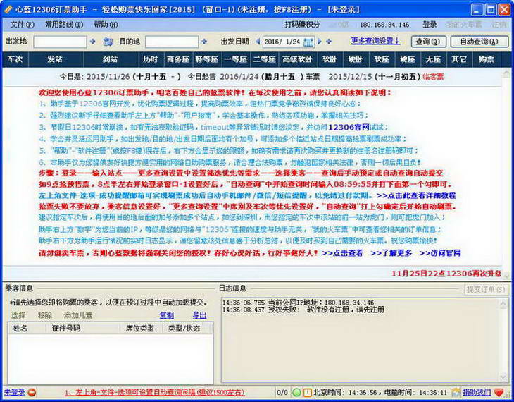5、定时查询,自动查询有票后自动提交等功能,满足各种订票需求;