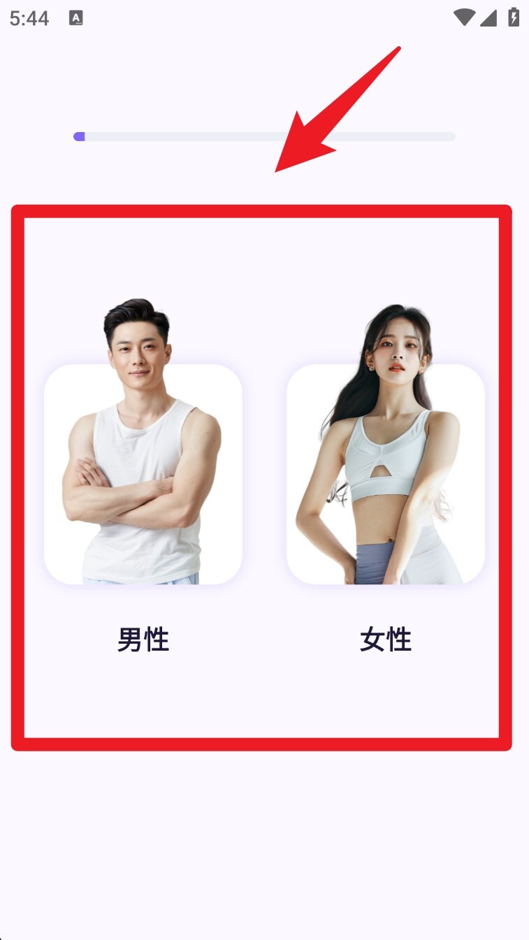 1. 启动挥汗鼓点舞APP后,首先需要选择性别(男或女),系统会根据所选性别提供相应的训练建议。