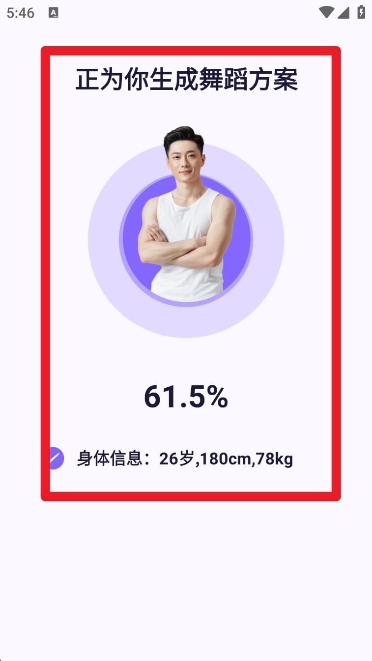 4. 系统会根据你的身高、体重和目标部位生成专属的舞蹈锻炼方案,展示进度百分比。