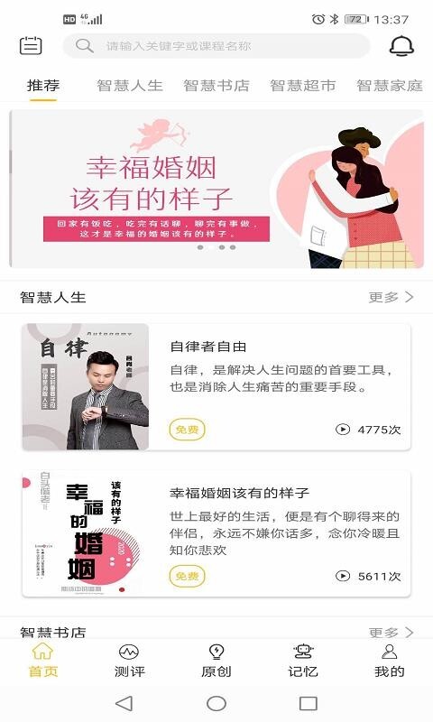 智慧记忆APP以精品课程为主导,内容涵盖亲密关系、亲子教育、创业思维等多个领域,邀请一线专家学者、教授和企业家坐镇导师,提供新颖、实用的知识内容。