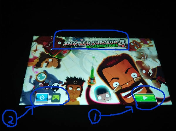 左上角的黄色箭头代表返回键。黑色的电影剪板意味着会返回到主角(医生)的唠叨部分。右边的白色问号则对应第一个医生的任务,点击它即可。