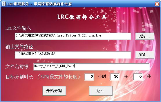 将超限的歌词文件进行分割,破解MP3/MP4播放器对于歌词文件大小的限制,听电影看对白学外语,打造移动外语学习平台。