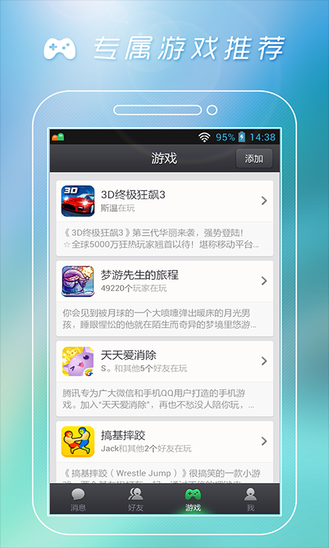 你可以将自己喜欢的游戏一键分享给好友,对方点击聊天气泡即可下载同款游戏;