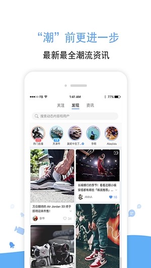 足迹:你可以快速发布一条足迹,附近用户可以根据足迹快速寻找到你。资讯:汇聚了全网运动、球鞋、实战等相关自媒体,内容详实更新及时,让您随时随地听到新的“动静”。