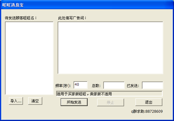 1.本工具只向买家版旺旺发送消息,不支持卖家版旺旺
