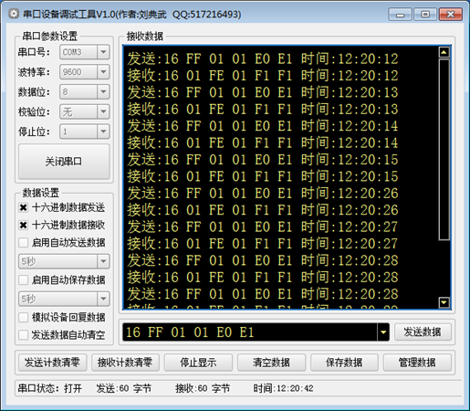 1:支持16进制数据发送与接收。