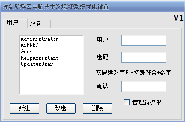 挥剑斩浮云xp系统优化设置可以添加用户,并能够设置密码,获得一定管理权限。操作非常简单。优化你的系统,增快运行速度,不妨下载用下!