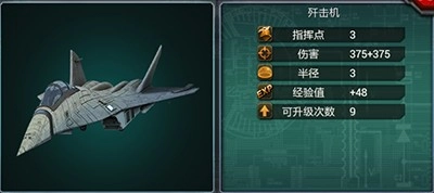 1. 歼击机,初始指挥点数为3,是新手玩家攻城掠地的得力工具,直接瞄准敌方的武装核心区域展开轰炸即可!