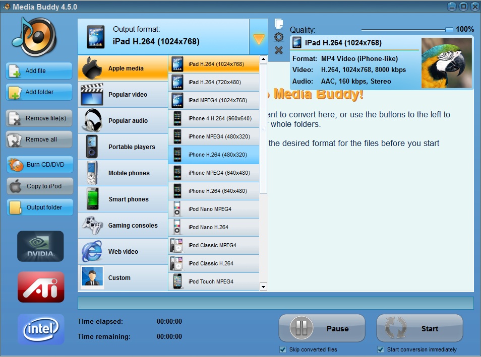 媒体格式文件转换器(Media Buddy)是一款功能非常强大的格式转换器,视频格式转换器可以转换大多数主流视频格式,而且还支持音频等格式文件。