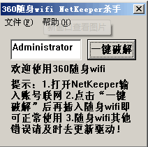 360随身wifi netkeeper杀手是针对360随身wifi设备而开发的一款破解小软件,纯绿色版,完全免费,能够实现一键破解的功能,让你的wifi设备能够正常工作不掉线