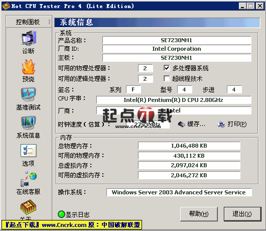 CPU好不好,一试就知道。Hot CPU Tester是系统稳定的测试工具,找出超频或是有缺点的CPU,对于喜爱超频的使用者来说,尤其可以使用这套软件看看超频后的系统是否稳定。
