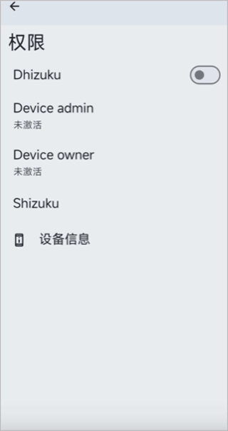 2、接下来选择一种激活方式,对于未root的用户,可选用Shizuku或Dhizuku来激活,在此推荐使用Dhizuku进行激活。