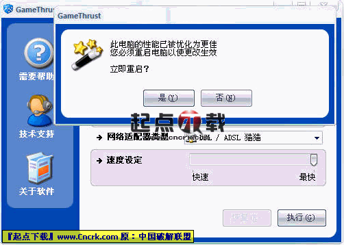 GameThrust 通过调整您计算机的设置来提高游戏和网络访问的速度,对硬盘没有任何改变,界面友好,一些相关操作都很简单