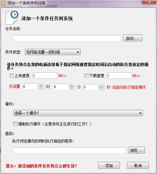 1、增加了条件定时关机功能,支持运行时长、空闲时长、断网检测、网络流量低等条件的定时关机功能,适应更广泛的挂机、定时关机需要;