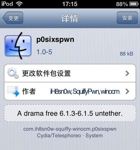 p0sixpwn是一款iOS6.1.3~iOS6.1.5的ios6完美越狱补丁,只需在Cydia安装一个p0sixspwn升级包就能将您手中的iPhone 4、iPod Touch 4G以及iPhone 3GS从不完美越狱变成完美越狱。