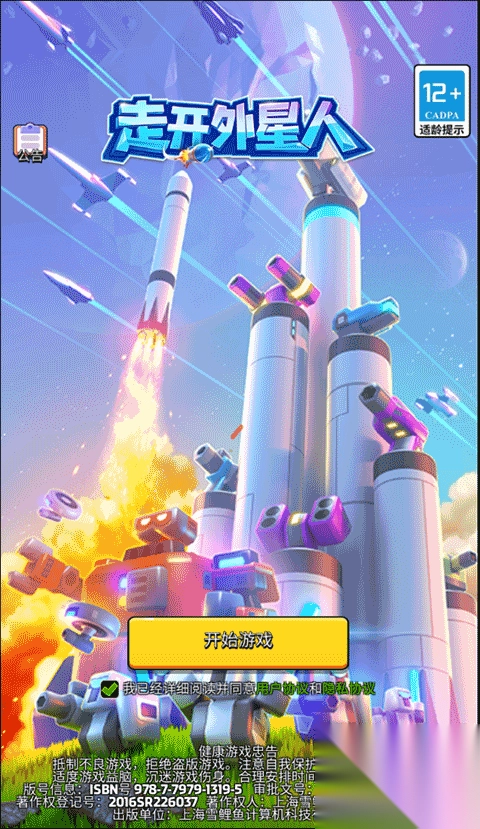 1. 运行游戏,在主界面勾选“我已详细阅读并同意用户协议和隐私协议”,然后找到并点击“开始游戏”选项。