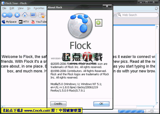 Flock for Windows V2.5.6 英文绿色免费版 Flock是一款基于FireFox的浏览器,声称可以带给用户Web 2.0的全新体验.集成了RSS、Blog、书签、图片共享等下一代网络技术,拥有多项目前浏览器所不具备的功能.Flock 比较重要的一个特性是拥有一个Blog编辑器,可与WordPress、Movable Type、Typepad、Blogger等协同工作,同时可以通过简单的拖拽动作在Blog内共享图片,甚至还配备了一个可存储网页内容的剪贴簿,方便在Blog内使用.