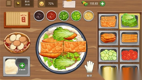 游戏内设置了丰富的食材、调料以及配方体系。玩家能够通过持续获取新食材,并尝试各式各样的搭配组合,制作出形形色色的美味煎饼。如此一来,便能吸引更多顾客,提升游戏评分。