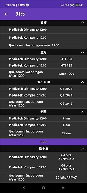 可以查询到包括指令集,型号,发布时间,核心数和大小核心配置,具体的核心架构,支持的内存频率,GPU型号的32位浮点数算力,NPU型号和具体核心配置,AI算力等,基带GPS的支持情况等