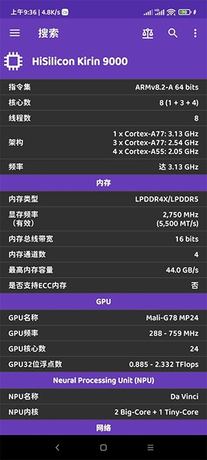以国产之光麒麟9000参数页的截图为例,来说明详细的参数。