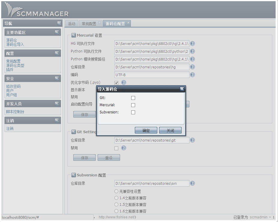 SCM Manager 是一款同时支持Git、Subversion、Mercurial的源代码管理服务器,基于Java构建。相对于其他源码管理服务器