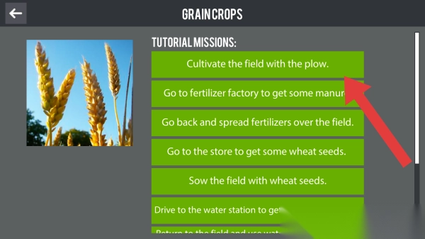 3、列出了耕种田地、获取肥料、播种等一系列种植小麦的教程任务,用于指导玩家学习粮食作物种植流程。