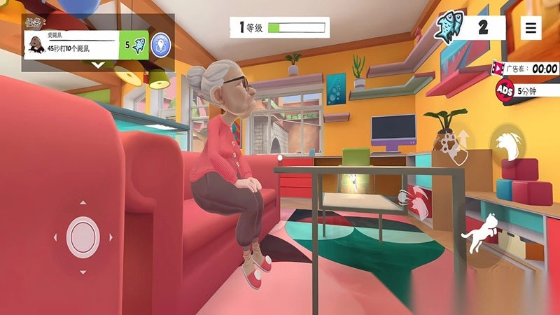 3、互动玩法,靠近老奶奶互动,或玩场景里的猫玩具,触发趣味情节。