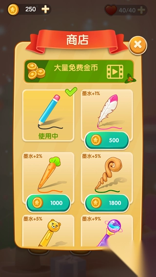 4、可以使用金币在商店购买不同的类型画笔。